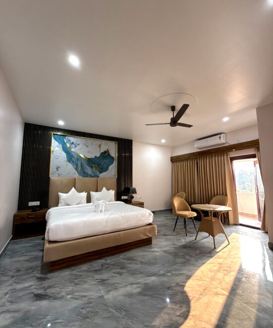 Experience one of the most spacious Deluxe Rooms in Jorhat, thoughtfully designed across 650 sq. ft. to offer a perfect blend of comfort, elegance, and functionality.